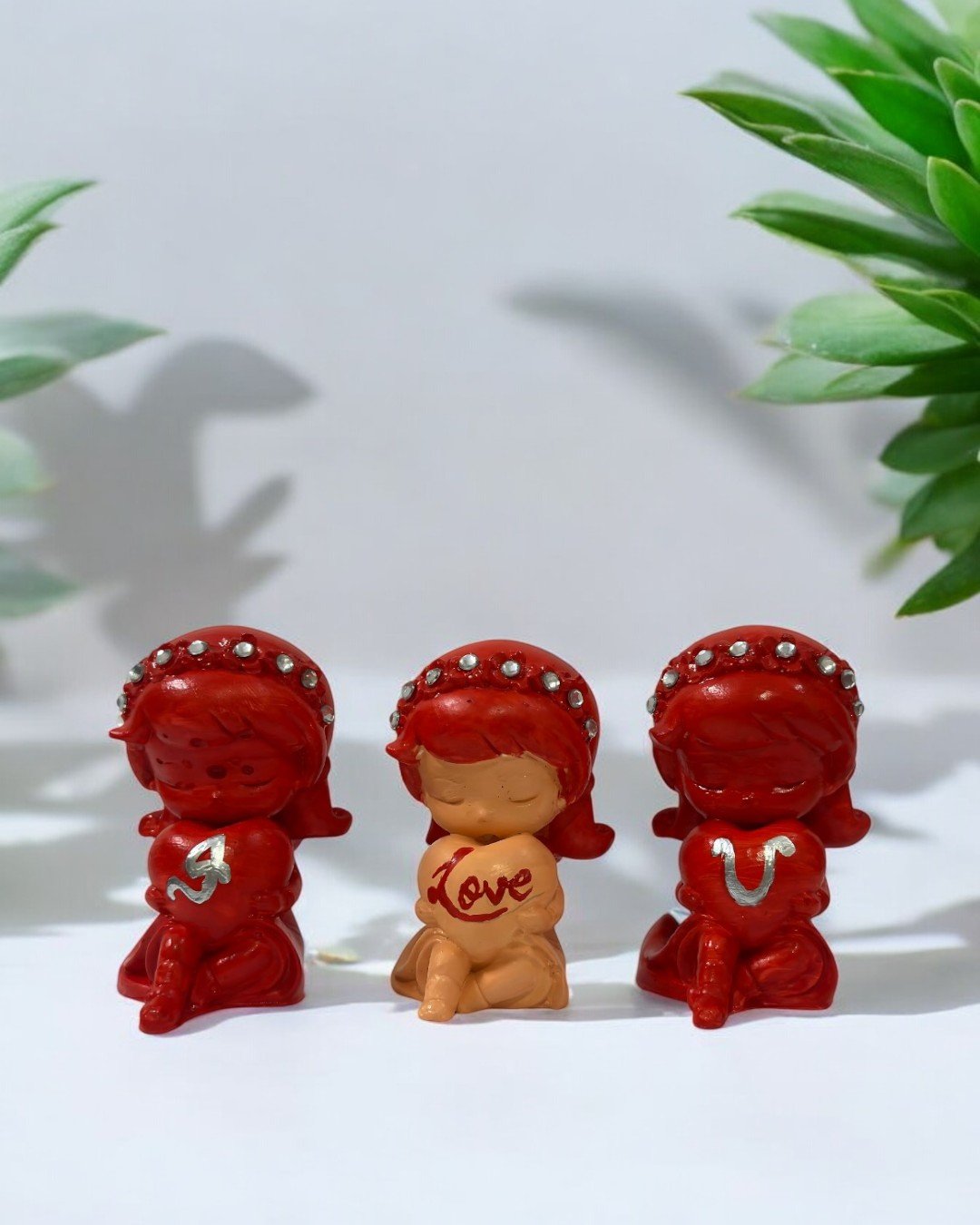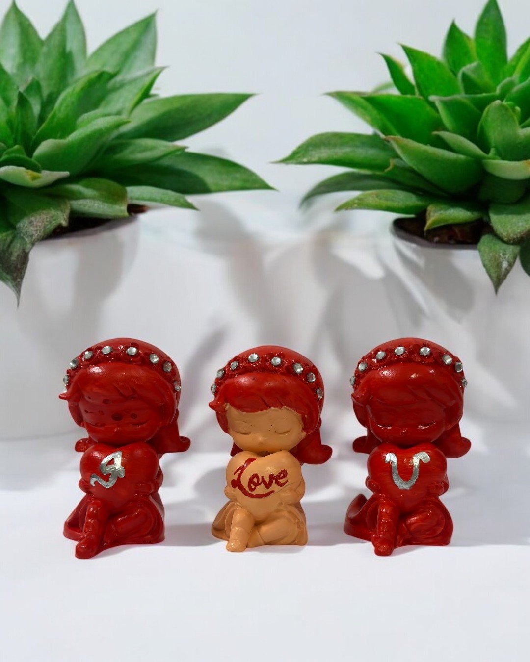 These charming handcrafted figurines feature adorable characters holding hearts with love-themed designs, adorned with delicate embellishments. Perfect for expressing affection, they make a delightful addition to your decor or a heartfelt gift for loved ones. Their vibrant colors and playful design add a touch of warmth and love to any space.