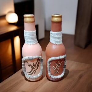 These beautifully handcrafted bottles feature intricate Arabic calligraphy encased in a rustic frame design. Each piece is a unique blend of art and culture, designed to bring a sense of serenity and elegance to your home decor. Perfect for gifting or enhancing your living spaces with a touch of tradition.