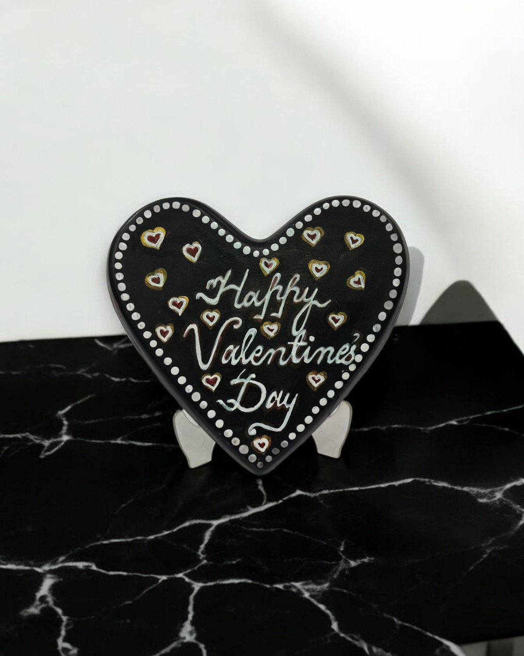 Celebrate love with this charming handmade heart-shaped plaque, adorned with delicate hand-painted details and “Happy Valentine’s Day” lettering. A perfect gift for your loved one or a decorative piece for the occasion. Each piece is unique with slight variations in design, adding a personal touch.