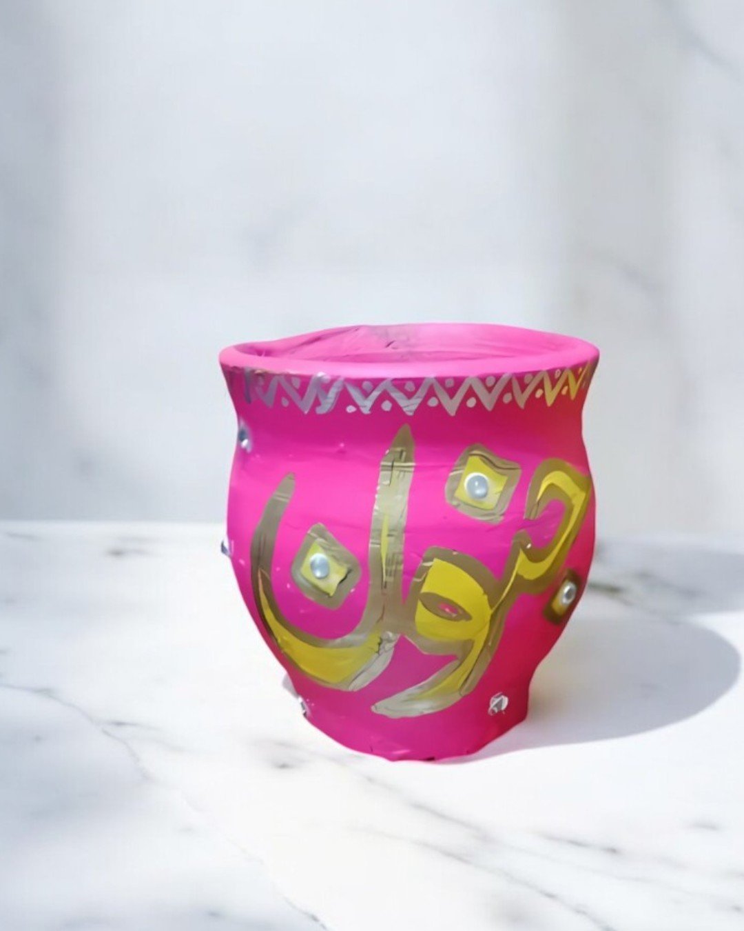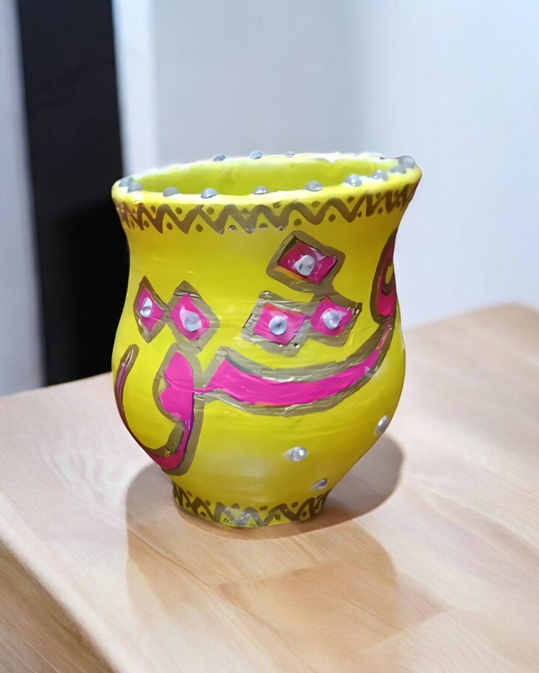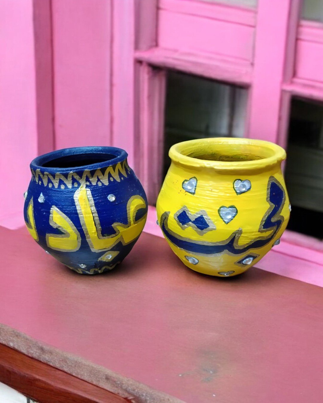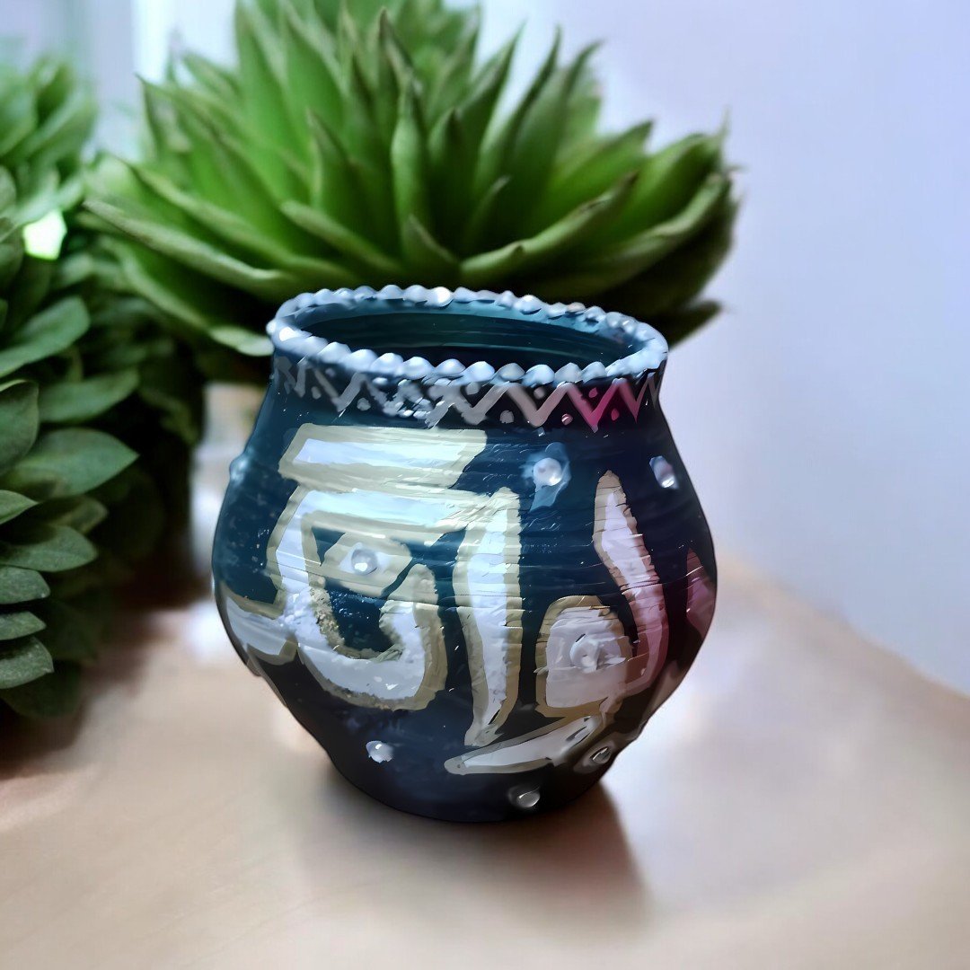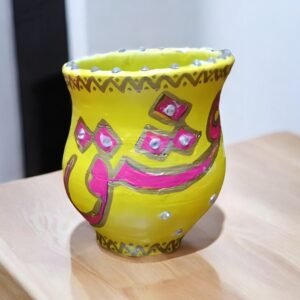 These handcrafted pots feature beautifully written Urdu words in bold, vibrant colors, celebrating cultural heritage and tradition. Each pot is adorned with intricate detailing and decorative elements, making it a perfect statement piece for your home or office. Ideal for adding a touch of creativity and cultural pride to your living spaces or gifting to loved ones.