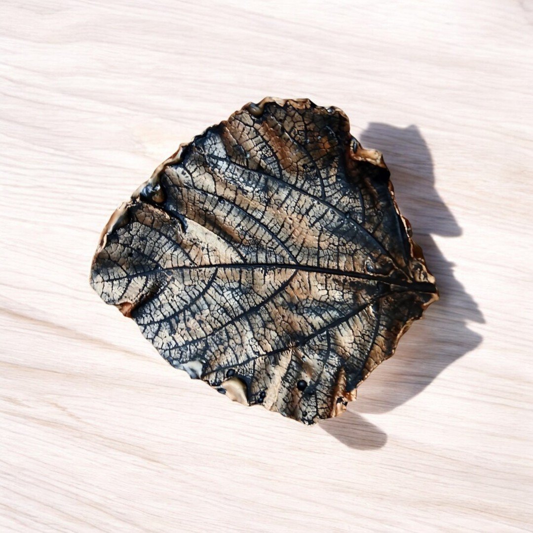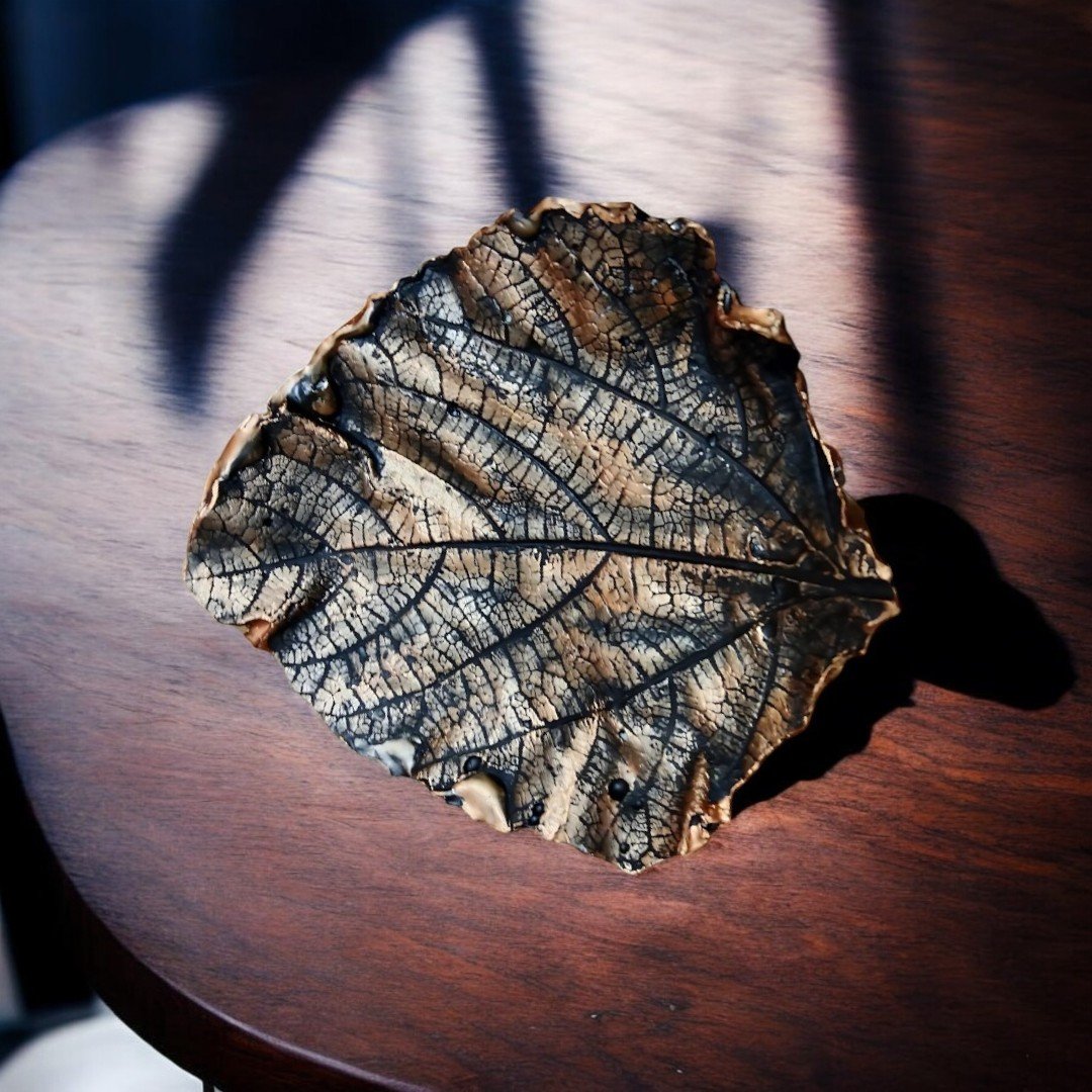This stunning 6-8 inches leaf-shaped tray showcases intricate vein detailing with a sophisticated vintage finish. Ideal for holding trinkets, jewelry, or as a centerpiece, it adds a touch of elegance and natural beauty to any space. Perfect for enhancing your decor with a unique and timeless design.